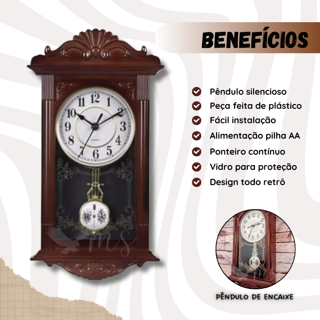 | Relógio De Parede Com Pêndulo Modelo Antigo Vintage Retrô este produto | R$ 78,90 | 41% | 4.7/5 | — |