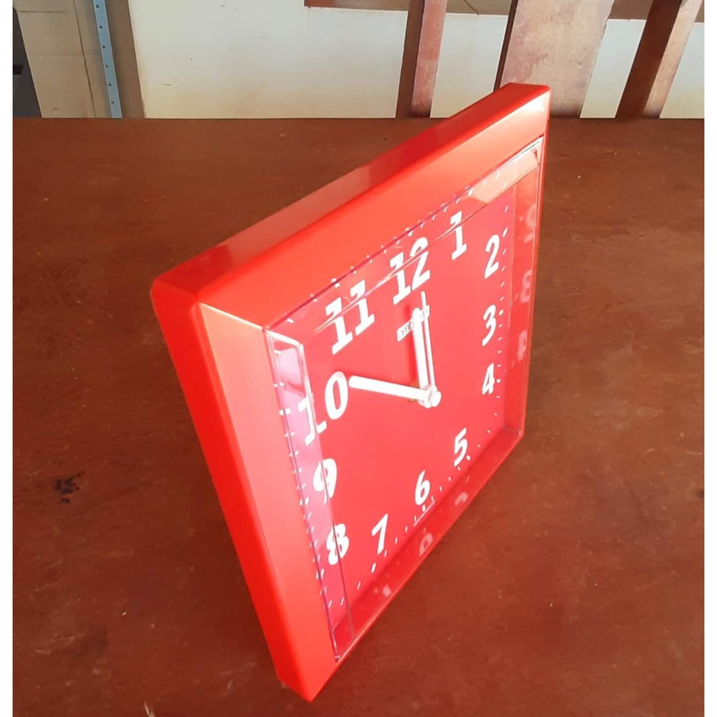 RELOGIO DE PAREDE FUNDO VERMELHO QUADRADO NRS BRANCOS