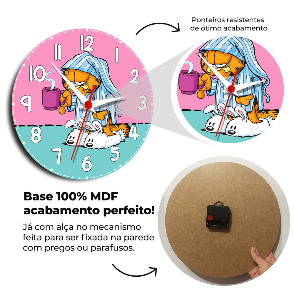 Relógio de Parede Garfield Decoração - Relógio Personalizado