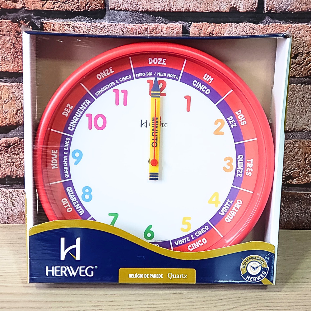 Relógio de Parede Herweg Quartz Analógico Didático Vermelho 6690 - 269