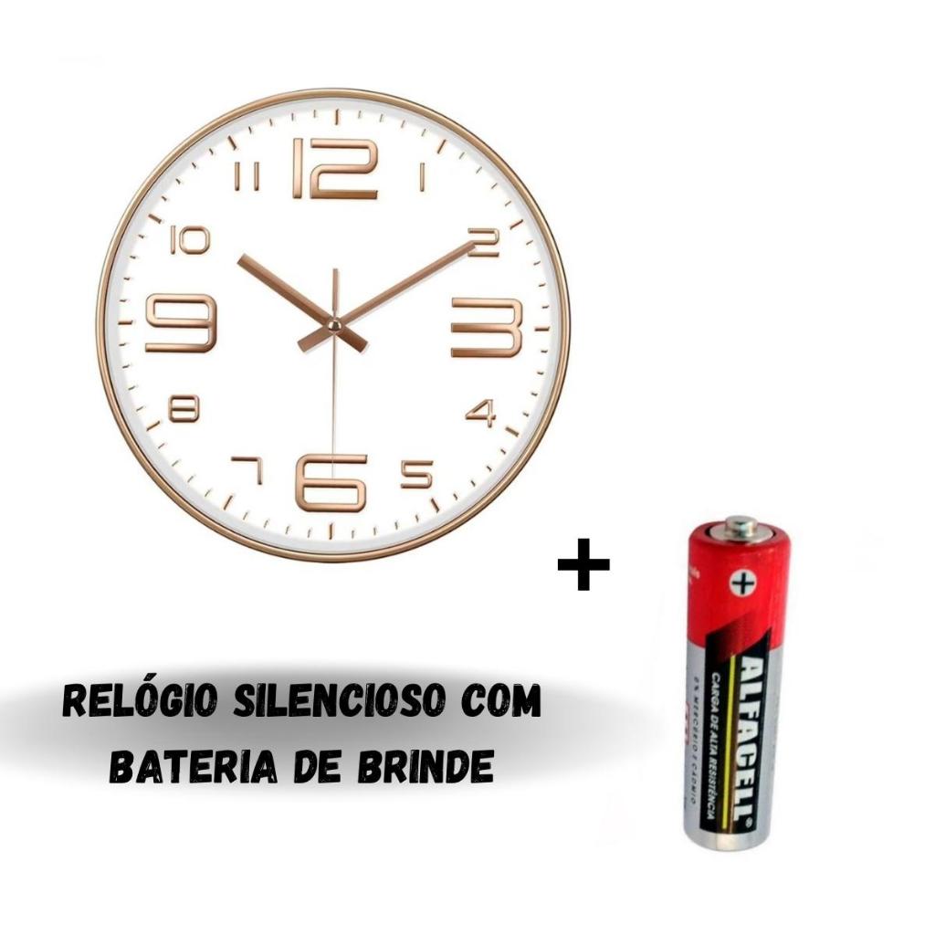 Relógio de Parede Moderno 20cm, Com Bateria Inclusa, Movimento Silencioso, Rosé Gold Cozinha, Quarto