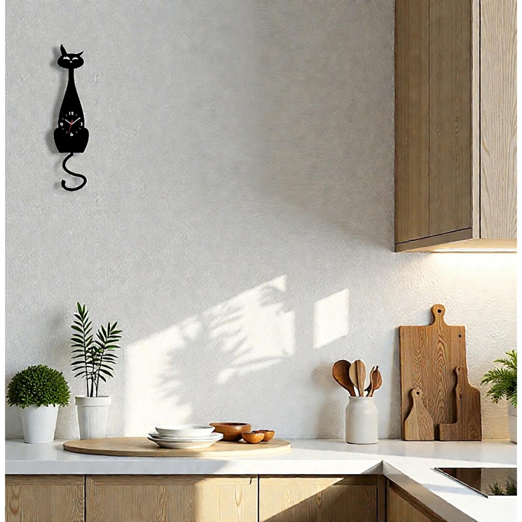Relogio De Parede Pendulo Gato Acrilico Balança Rabo + Impressão UV - Pendulart