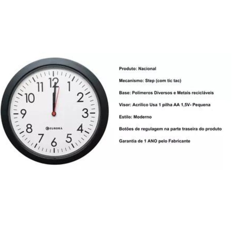Relógio de Parede Preto 27cm - Eurora - 6575