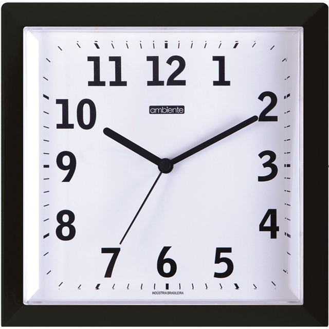 RELOGIO DE PAREDE QUADRADO NUMEROS PRETOS FUNDO BRANCO