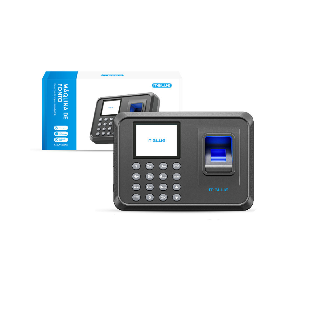 Relógio de Ponto Biométrico Digital USB Tela LCD 2,4" Polegadas Rápido It Blue SC-9002C