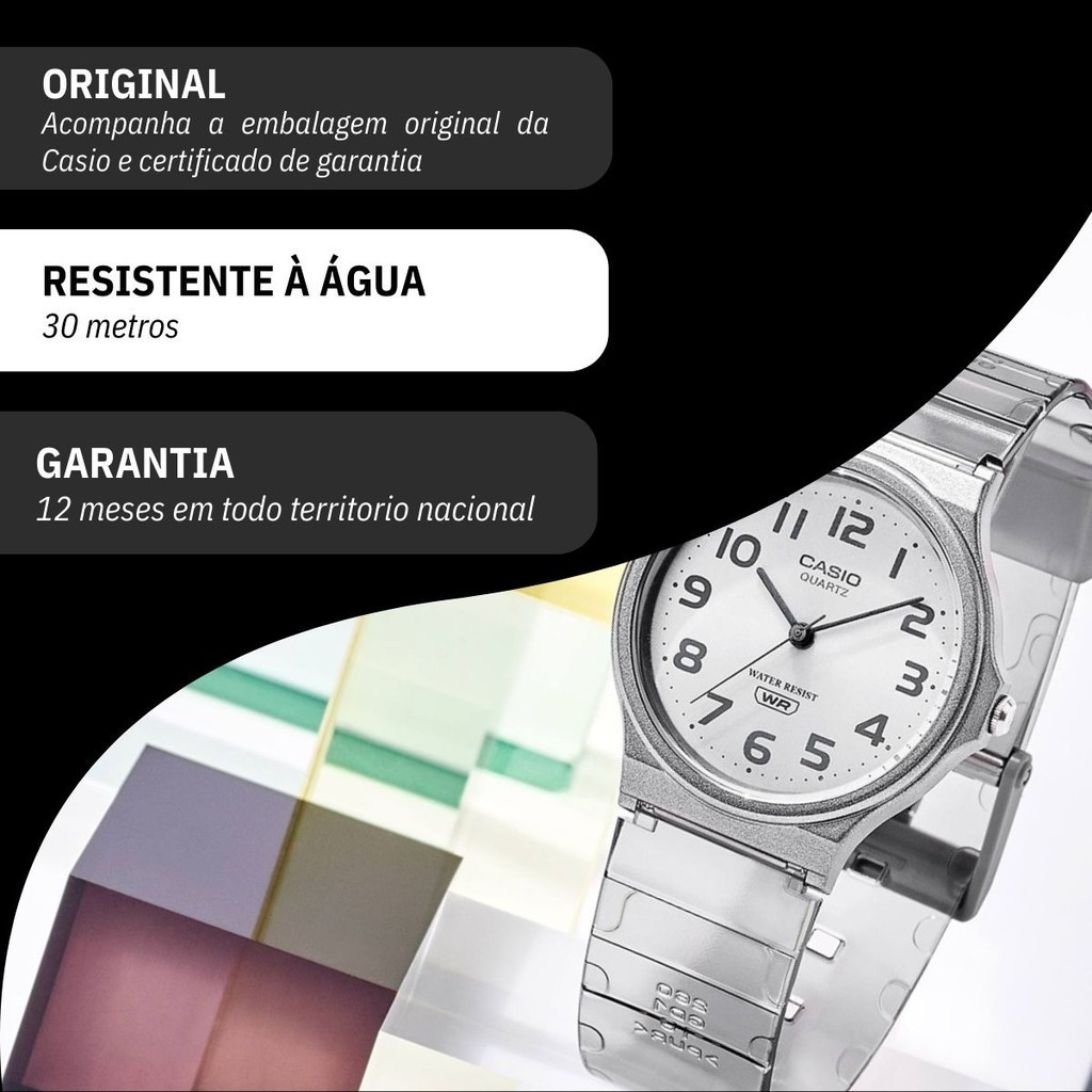Relógio de Pulso Casio Standard Transparente Original Mulher Esposa Namorada Mãe Barato MQ-24S-8B