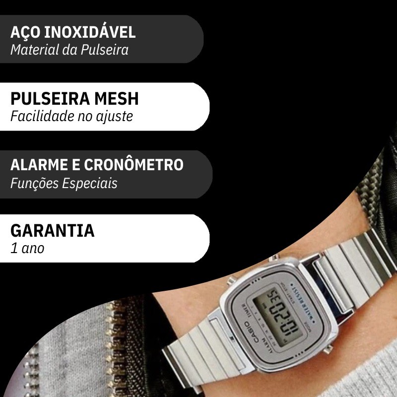| Relógio de Pulso Feminino Digital Vintage Prata Mini LA670WA-7DF este produto | R$ 249,00 | 38% | 5.0/5 | 3 |