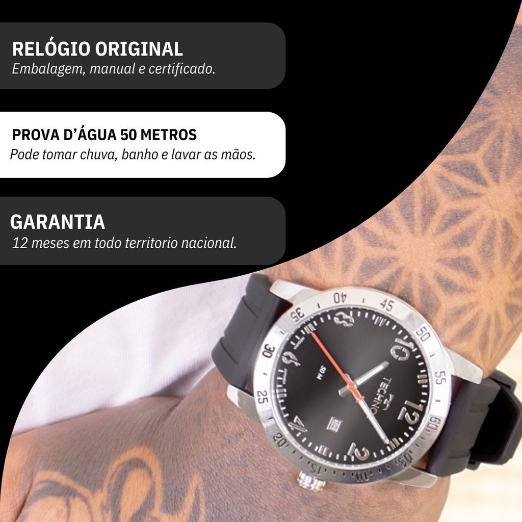 Você está procurando um relógio de sofisticado de silicone para acompanhar o seu dia a dia? Seja bem vindo à RBM WEBSHOP - todos os nossos relógios são originais e a pronta entrega para envio imediato. Veja as PRINCIPAIS CARACTERÍSTICAS do Relógio Technos Performance Masculino Informações Básicas Marca: Technos Modelo: 2115NAS/2P Gênero: Masculino Resistência à Água: 5atm – 50mts - Pode lavar as mãos e tomar banho com ele Medidas do Relógio Tamanho(Diâmetro): 4,3 cm (MÉDIO) Circunferência da pulseira e tamanho máximo de ajuste de punho: 19 cm Espessura: 1,1 cm Largura da Pulseira: 2,0 cm Peso: 76 gramas Materiais do Relógio Composição do Vidro: Cristal Mineral (RESISTENTE A RISCOS) Material da Caixa: Aço Inoxidável Material da Pulseira: Borracha Material da Tampa: Aço Inoxidável Características do Relógio Mecanismo: Analógico Alimentação: Bateria Duração aproximada da bateria: 2 anos Fecho: Fecho Fivela (Buckle) Tampa Posterior: Rosca Funções Especiais Calendário Cores Mostrador: Preto Caixa: Prata Pulseira: Preto Garantia 1 ano de garantia em todo território nacional com a rede autorizada Conteúdo da Embalagem Este produto acompanha Manual em Português e Nota Fiscal, Embalagem de Fabrica Original e Garantia Nacional do Fabricante. VAMOS CONHECER MELHOR SOBRE A LOJA RBM WEBSHOP RELOGIOS? Somos uma das melhores e maiores lojas de relogios no Brasil. Todos os relógios vendidos pela nossa loja são 100% originais, contém nota fiscal, certificado, manual de instruções e garantia de 12 meses com a rede de assistência em todo o Brasil. Dúvidas? Pergunte, e será um enorme prazer lhe atender!