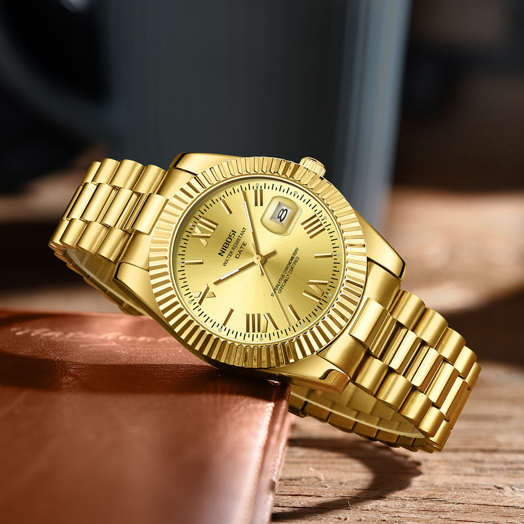 Relógio de Pulso NIBOSI Quartzo com Pulseira de Aço Inox/Militar