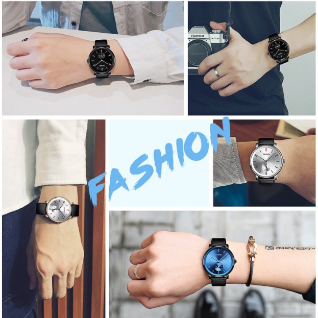 Relógio De Pulso Skmei De Quartzo Casual À Prova D 'Água Com Pulseira De Couro Para Masculino E Mulheres