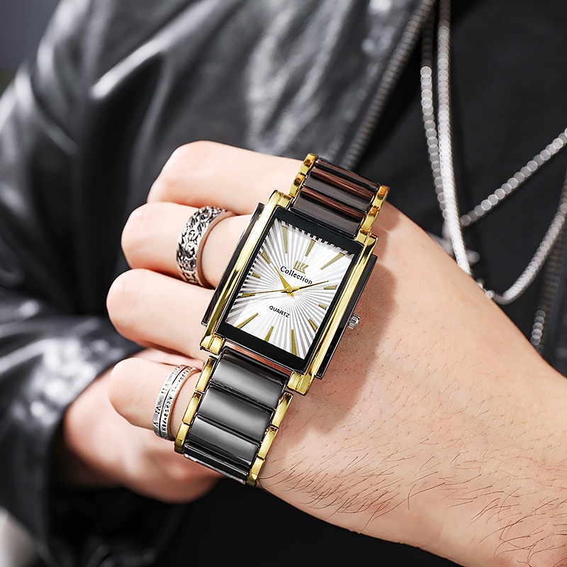 Relógio De Quartzo De Cerâmica Em Aço Inoxidável Simples E Moderno Balança De Unhas Negócios Sala De Lazer Masculino De Ouro