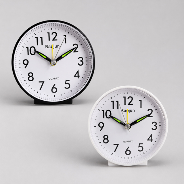 Relogio Despertador Redondo de Mesa Simples Minimalista Presente Branco Preto Alarme Tic Tac
