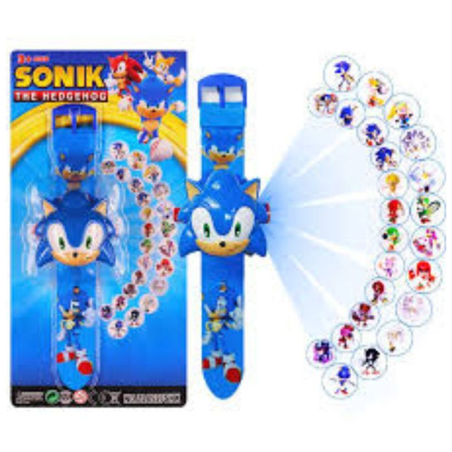 Relógio digital do SONIC com projetor de imagens, ótima diversão para as crianças. No total são 24 imagens diferentes no projetor do relógio. Basta apertar o botão lateral e apontar o relógio para a parede para que a imagem apareça. Produto a pronta entrega. enviamos para todo o Brasil. certifique se que esta em absoluta certeza da compra, antes de realizar o mesmo. Possui ajuste de foco, hora e data. Não é resistente a água. Pulseira ajustável tamanho: 22,5cm x 6,5cm