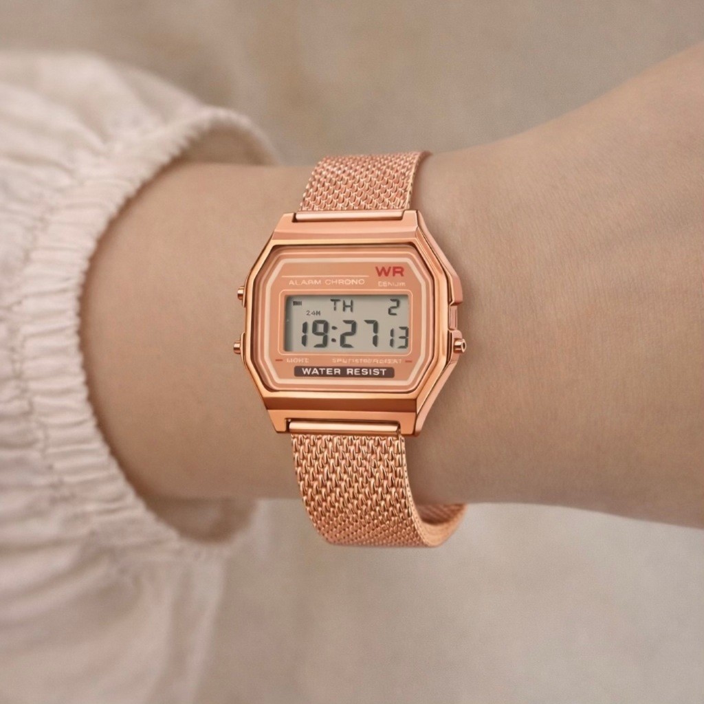 Relógio Digital Feminino Compacto com Estilo Clássico e Cronômetro
