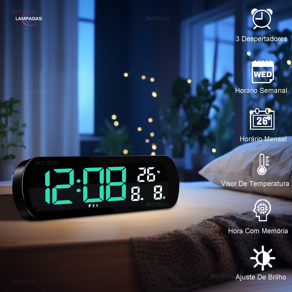 🏪 Seja bem-vindo(a) à Lampadasstore! 💸 Siga nossa loja e torne-se fã! Cupons de desconto são liberados regularmente — mantenha os olhos abertos para não perder oportunidades de economizar! 🚚 Envio super rápido! Pedidos pagos são despachados em até 4 horas após a confirmação do pagamento. 🤗 Dúvidas? Estamos aqui para ajudar! Entre em contato com nossa equipe a qualquer momento, responderemos com agilidade e cordialidade. Relógio Despertador Digital de Mesa | Praticidade + Design Moderno ⏱️ Procurando um relógio que combine utilidade e estilo para o seu espaço? Este relógio despertador digital de mesa é a escolha ideal para o seu dia a dia 🌟 — um item que não só marca a hora com precisão, mas também adiciona um toque charmoso à decoração do quarto, escritório ou sala de estar! Ele traz todas as funções que você precisa no dia a dia: Monitoramento de temperatura ambiente: Saiba a temperatura exata do seu espaço, ideal para ajustar o conforto do ambiente. Exibição clara da hora: Nenhuma confusão, a hora é visível de qualquer canto do cômodo. 2 alarmes programáveis: Perfeito para quem tem horários cheios, precisa acordar cedo para o trabalho/estudo ou ainda quer um alerta extra para não perder compromissos 😴. Com um design clean e elegante, ele se adapta a qualquer estilo de decoração — seja minimalista, moderno ou clássico. Além disso, conta com modo de hora 12h/24h (escolha o que mais combina com o seu hábito) e 2 níveis de brilho ajustáveis: diminue a luminosidade para não atrapalhar o sono à noite ou aumente para visualizar a hora com facilidade durante o dia. A alimentação é super flexível 🔌: use o cabo USB incluso (conecte em carregador de celular, notebook, power bank ou tomada USB) ou instale 3 pilhas AAA (não inclusas) — ideal para quem não quer depender de tomadas fixas ou precisa usar o relógio em locais sem energia elétrica! ✅ Por que escolher este relógio despertador? Multifuncional e eficiente: Tem tudo o que você precisa para organizar o dia a dia sem complicações — temperatura, hora e dois alarmes em um só aparelho. Fácil de usar por todos: Interface simples e botões intuitivos, sem configurações complexas — perfeito para crianças, adolescentes, adultos e idosos, mesmo quem não é muito familiarizado com tecnologia 🤗. Decoração e funcionalidade em um: Seu visual sofisticado eleva o nível de qualquer ambiente 🏡, substituindo aqueles relógios básicos e sem graça por um item que combina utilidade e bom gosto. Totalmente adaptável à sua rotina: Modos de hora e brilho ajustáveis para se encaixar perfeitamente no seu dia a dia, seja de manhã, tarde ou noite. 📋 Especificações Técnicas Material: Plástico resistente, vidro transparente e componentes eletrônicos de alta qualidade Alimentação: 2 pilhas AAA (não inclusas) | Cabo USB de alimentação (incluso na embalagem) Dimensões Aproximadas: 24 cm (Largura) x 9 cm (Altura) x 2,7 cm (Profundidade) 🎁 Conteúdo da Embalagem 1 Unidade de Relógio LED Digital com Despertador 1 Cabo USB de Alimentação ✅ Qualidade Garantida Todos os produtos da Lampadasstore passam por inspeção rigorosa do departamento de controle de qualidade antes do envio, garantindo que você receba um item em perfeitas condições. Compre com total tranquilidade!✅ Nossa Prioridade é a Sua Satisfação Nosso objetivo sempre foi oferecer produtos e serviços que deixem você 100% satisfeito! Se gostou da sua compra, deixe uma avaliação de cinco estrelas — sua opinião é muito importante para nós. Qualquer problema ou dúvida, nossa equipe de atendimento ao cliente estará pronta para resolver rapidamente 🙏. #Alarm#RelógioDespertador#RelógioDeMesaDigital#RelógioDespertadorDigital#RelógioLedDigital#RelógioDespertadorDeMesa#RelógioDeMesaDigitalLed