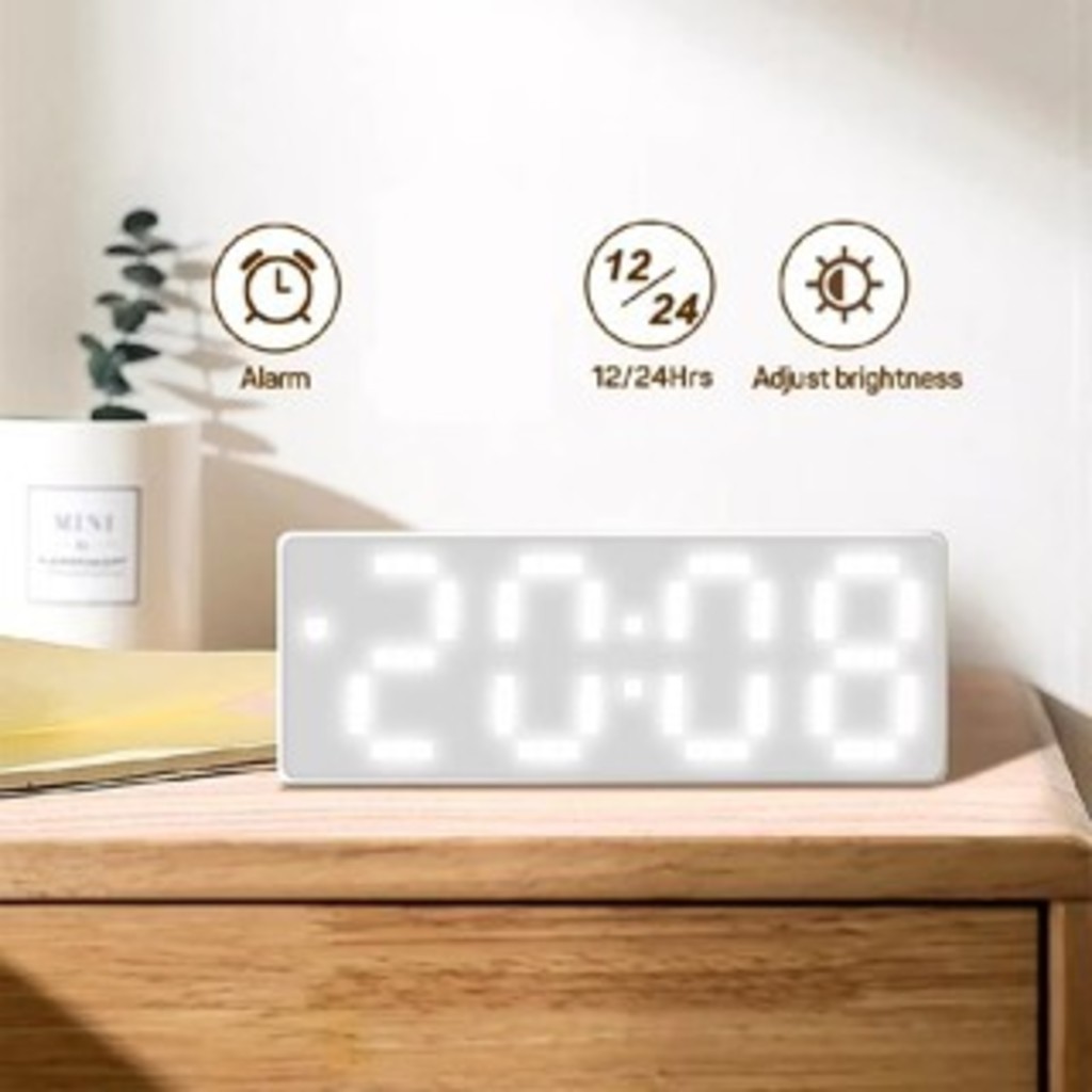 Relógio Digital Mesa 16x6x2.5 Tela Clara E Brilhante Com Calendário Temperatura Alarme Acompanha Usb
