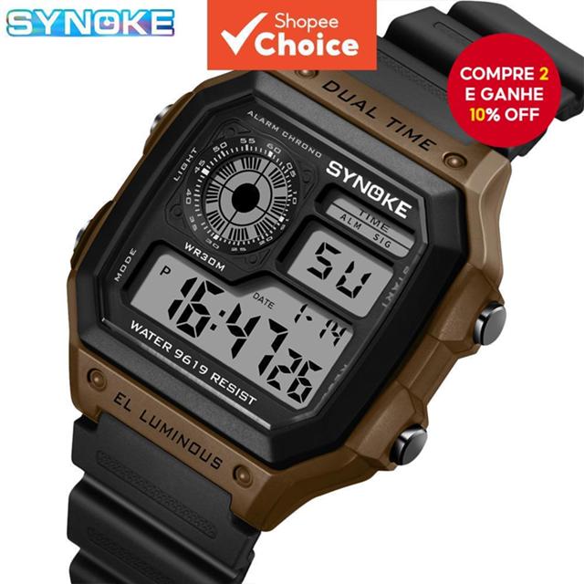 Catalogado na subcategoria Relógios Masculinos (de Relógios), Relógio Digital Militar Masculino SYNOKE , Esportivo Resistente À Água Com Exibição De Data E Semana está à venda na Shopee Brasil por R$ 26,31 (39% de desconto sobre o preço original de R$ 43,13). Nota 4.8 de 5 na Shopee e 147 unidades vendidas, este produto se destaca pelo excelente custo-benefício.