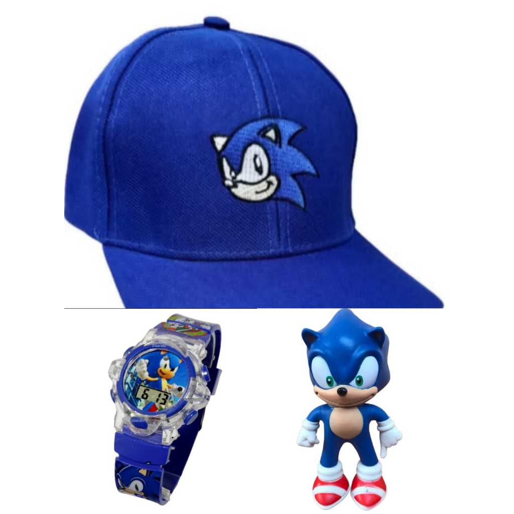 Relógio digital musical com led menino mais boné e boneco infantil masculino do sonic , qualidade e preço especial
