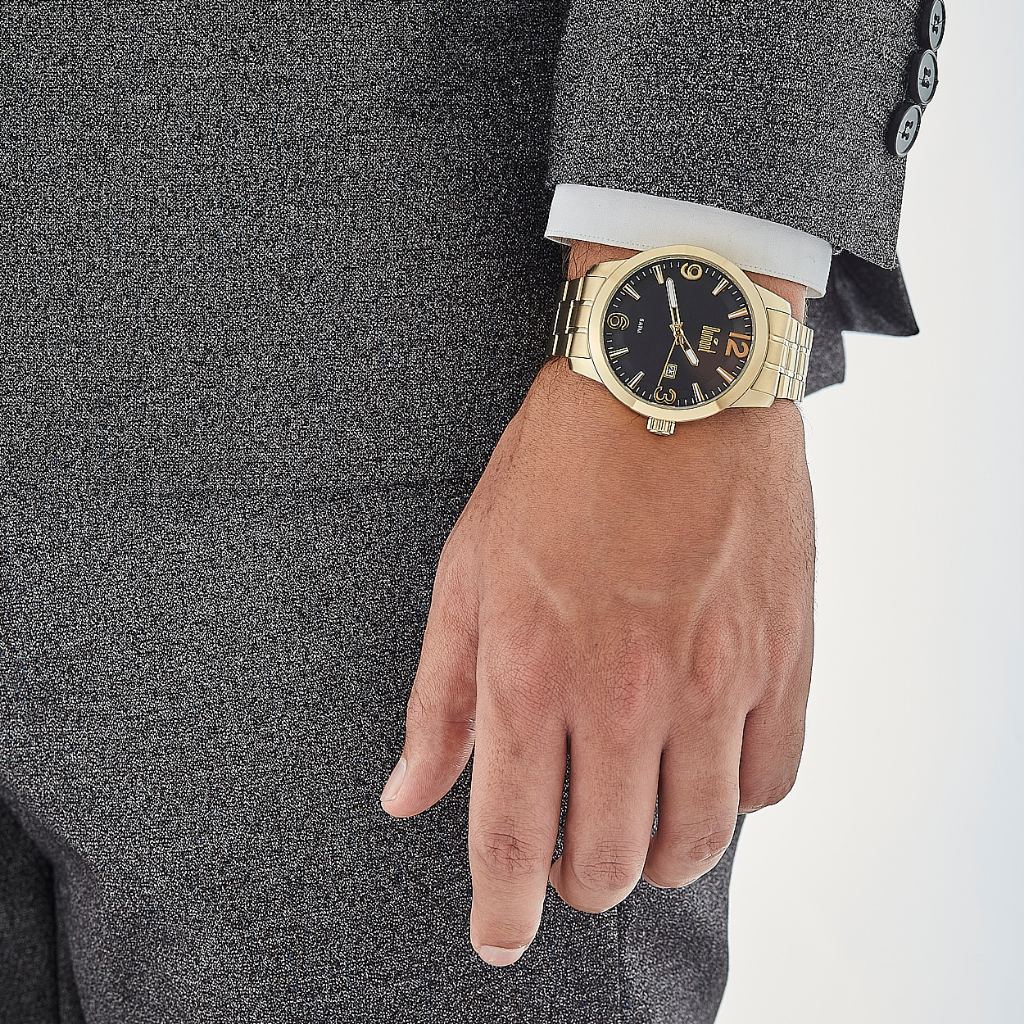 Relogio Dumont Masculino Dourado Fundo Preto Du2315ao/4c
