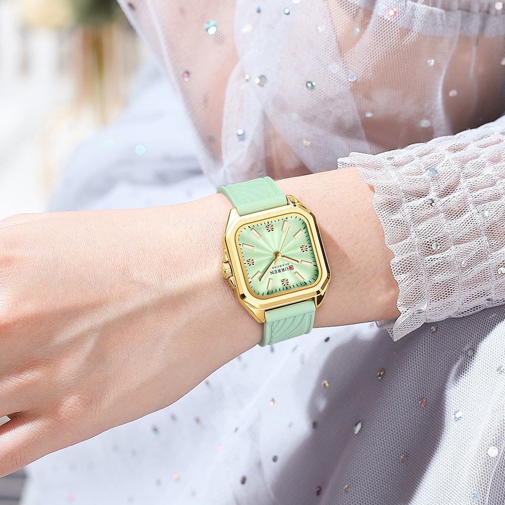 Relógio Feminino Autêntico CURREN Nova Pulseira Quadrada De Silicone Com Mãos Luminosas Design Exclusivo Estilo Versátil