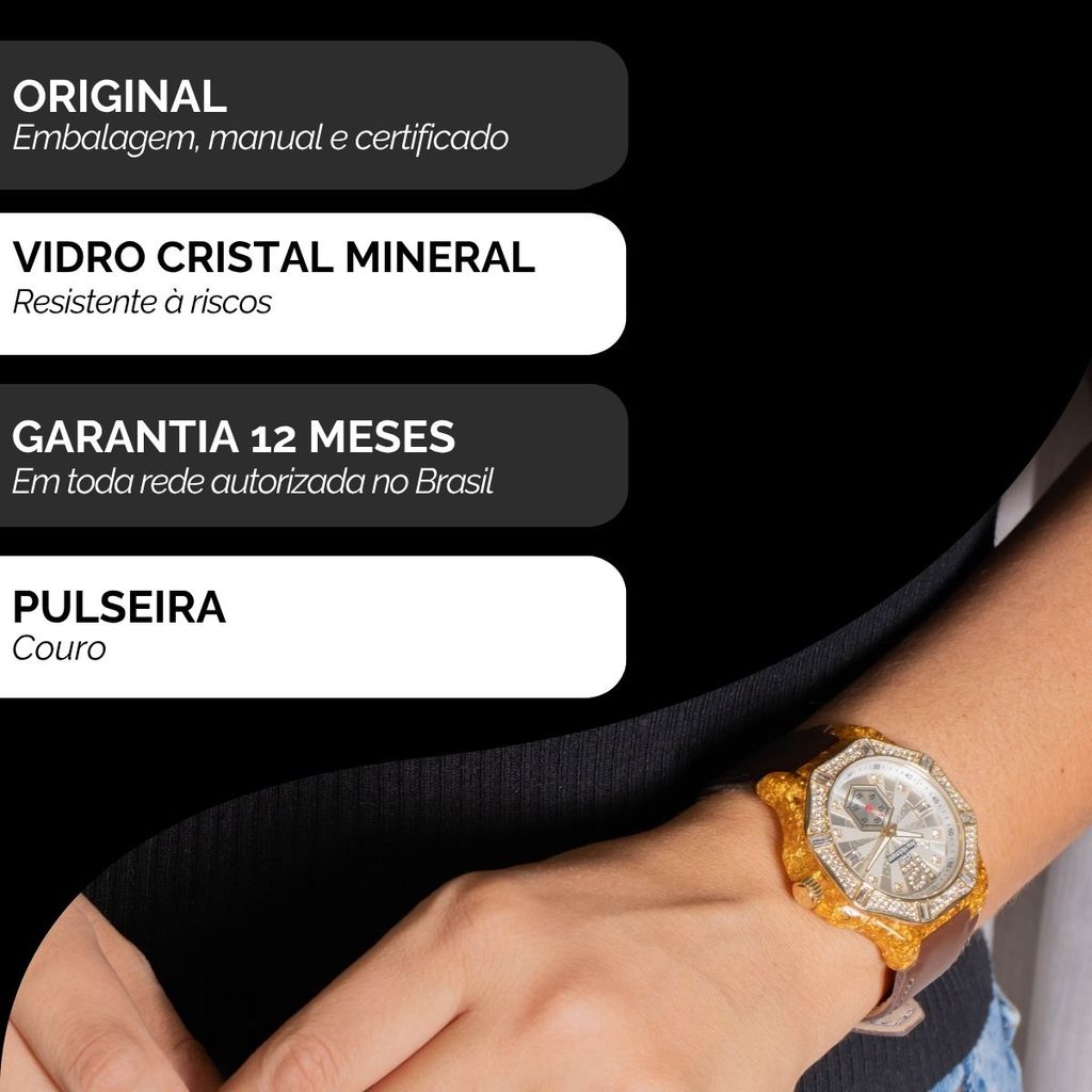 Relógio Feminino Champion Ana Hickmann Couro Cristais AH20097B Colar e Brincos