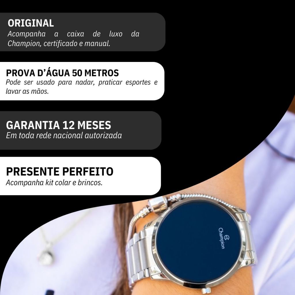 Relógio Feminino Champion Digital A Prova D’Água Original Presente Kit Colar e Brincos CH40142T