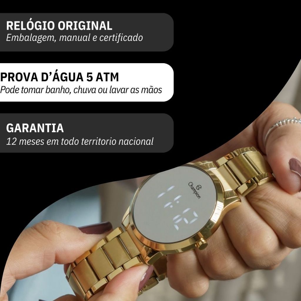 Relógio Feminino Champion Digital Espelhado Dourado Kit Colar e Brincos Original Presente CH40142B