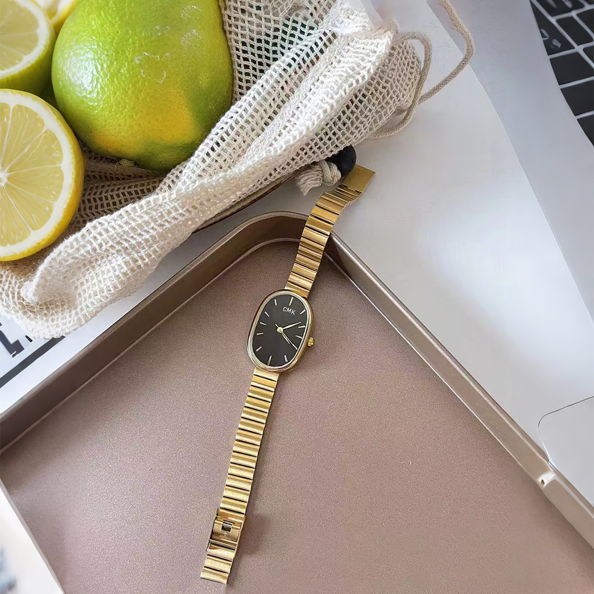 Relógio Feminino Chique Com Escala Listrada Magnético Para Mulheres Dourado-Um Presente De Feriado Elegante Da Moda
