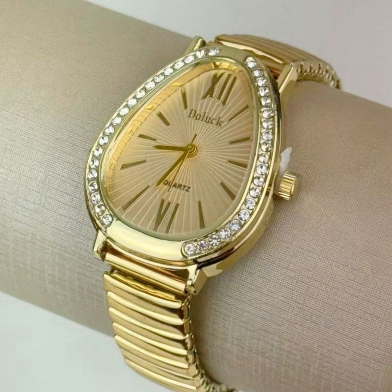 Relógio Feminino Cobra ELÁSTICO Luxo Pulseira Metálica Ajustável Moda Mulher Elegante