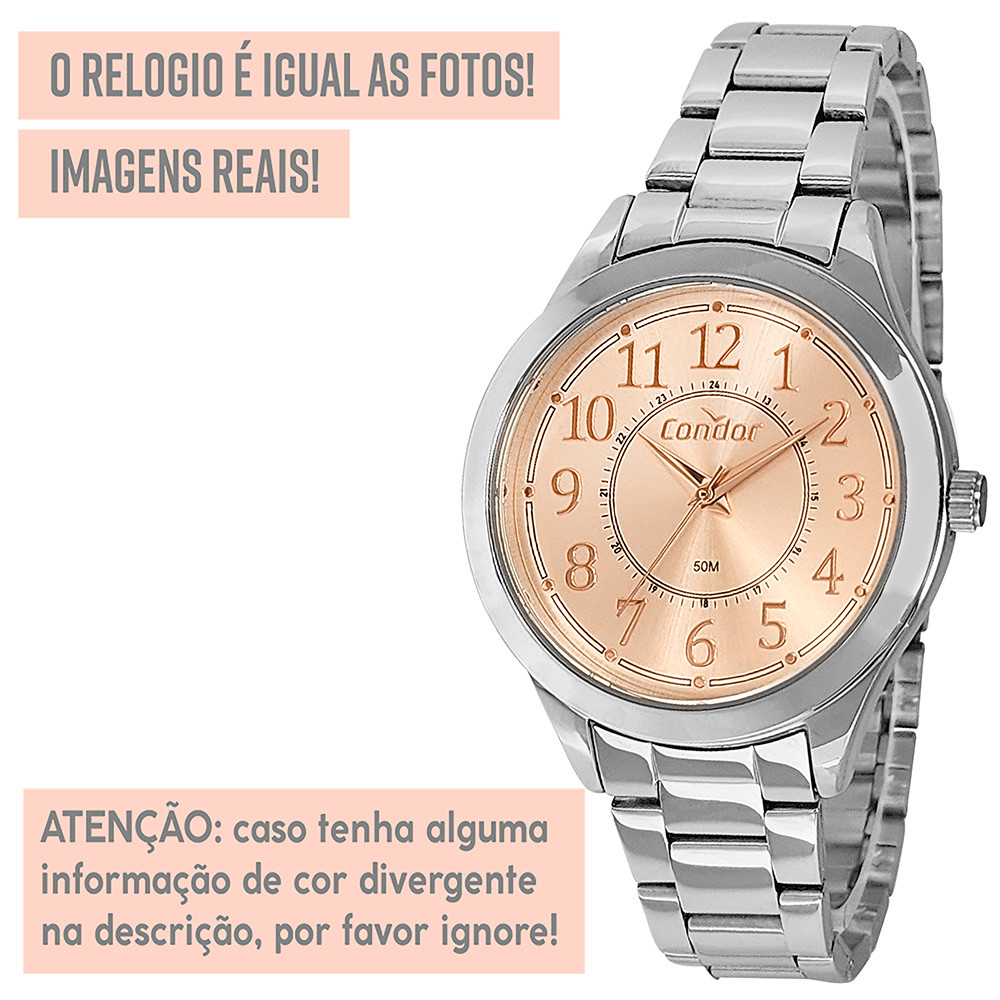 Relógio Feminino Condor Original Prata Prova Dágua Analógico
