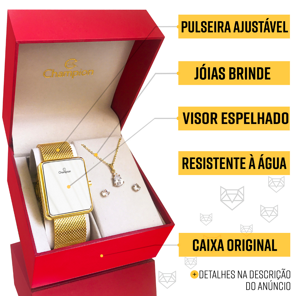 Oi! Tá procurando aquele presente perfeito? Encontrou! Dê o lindo kit Champion de presente para você mesmo, ou para alguém querido! Os relógios digitais estão em alta e combinam com tudo, sem contar que esse modelo tem a tela totalmente espelhada, então também serve como espelho portátil. Top! E aqui na loja LEBRAVE você vai encontrar somente produtos originais e com nota fiscal. Se ficar com dúvidas, leve o relógio em algum especialista da sua região para comprovar :) Ah, e tome cuidado com os anúncios falsificados por ai! O Relógio Champion Digital Original com Vidro Espelhado: - Tem 1 ano de garantia de fábrica e 30 dias de garantia da loja - É resistente à água (por exemplo: você pode lavar as mãos, lavar louças e tomar chuva) - Tem a tela totalmente espelhada - Tem a tela feita com cristal mineral (é mais resistente contra riscos!) - A tela é em LED (isso garante maior definição na imagem) - Tem bateria com longa vida útil - É feito todo em aço inoxidável - Tem calendário - E tem a pulseira totalmente ajustável por um fecho, ou seja, você pode ajustar em casa! Agora vamos falar do tamanho do seu Relógio: Largura do mostrador: 4 cm (40 mm) Altura do mostrador: 4,2 cm (42 mm) Largura da pulseira: 1,7 cm (17 mm) Ou seja, esse relógio tem um tamanho médio. É uma medida que fica perfeita na maioria dos pulsos femininos, tem um tamanho respeitável, mas sem nenhum exagero. E não tem nenhum risco de não servir bem, pois a pulseira é totalmente ajustável. A sua embalagem vai acompanhar: 1 Relógio Champion, 1 conjunto de colar e brincos, 1 caixa de luxo original Champion, 1 manual de instruções/certificado de garantia.