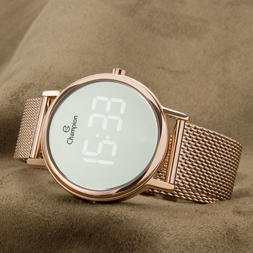 Relogio Feminino Digital Rose Champion Led Original Pulseira Esteira CH40179X