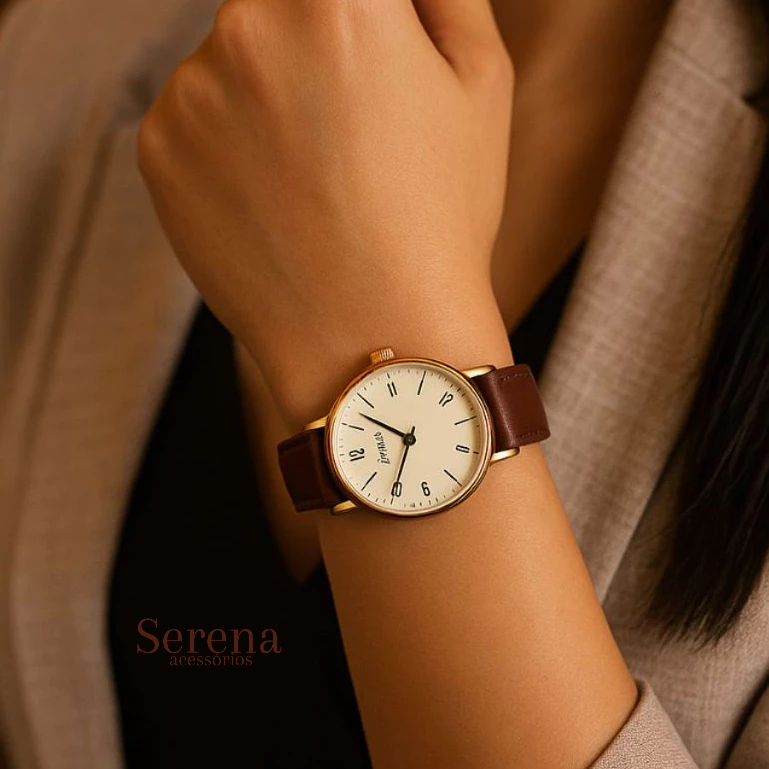 Relógio Feminino Marrom Elegante – Estilo Clássico com Toque Artesanal Esse relógio feminino une charme, praticidade e elegância em cada detalhe! Com pulseira marrom de 22 cm, ajustável e super confortável, ele se adapta com facilidade ao pulso. Seu design atemporal é perfeito para quem busca um acessório discreto, bonito e versátil – ideal tanto para o dia a dia quanto para ocasiões especiais. O mostrador redondo de 3 cm traz um visual minimalista e refinado, combinando com looks casuais ou mais sofisticados. O movimento de quartzo garante precisão e durabilidade no uso diário. Destaques do Produto: ✔ Pulseira ajustável com 22 cm de comprimento ✔ Mostrador elegante com 3 cm de diâmetro ✔ Movimento de quartzo confiável ✔ Estilo clássico, leve e delicado ✔ Ideal para presentear com carinho Feito para mulheres que valorizam pequenos detalhes que fazem a diferença. Um acessório com alma delicada, para quem gosta de se sentir bem todos os dias. Escolha com amor, use com estilo!