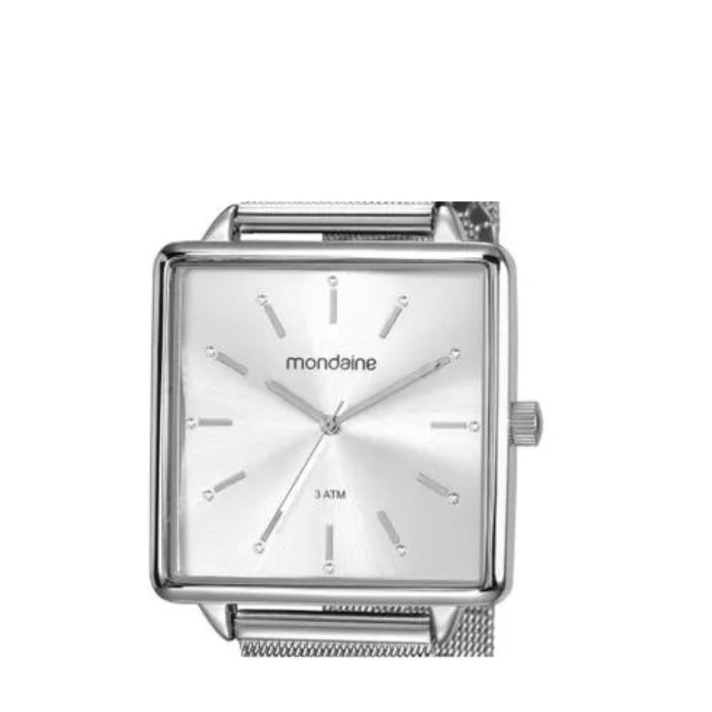 Relógio Feminino Mondaine 99487L0MVNE2Este relógio analógico possui caixa slim quadrada em metal, mostrador minimalista, sem numeração, com pequenos cristais nos marcadores e pulseira semi sólida em malha de aço com fácil ajuste ao pulso. Um relógio elegante e casual para usar todos os dias. ATM - PRESSÃO MÁXIMA: 3 ATM ALTURA (MM): 9 mm COMPRIMENTO DO RELÓGIO (CM): 24 ALARME: Não TAMANHO DA CAIXA: 36X44MM TAMANHO DO VIDRO: 30 mm GARANTIA: 1 Ano pelo fabricante