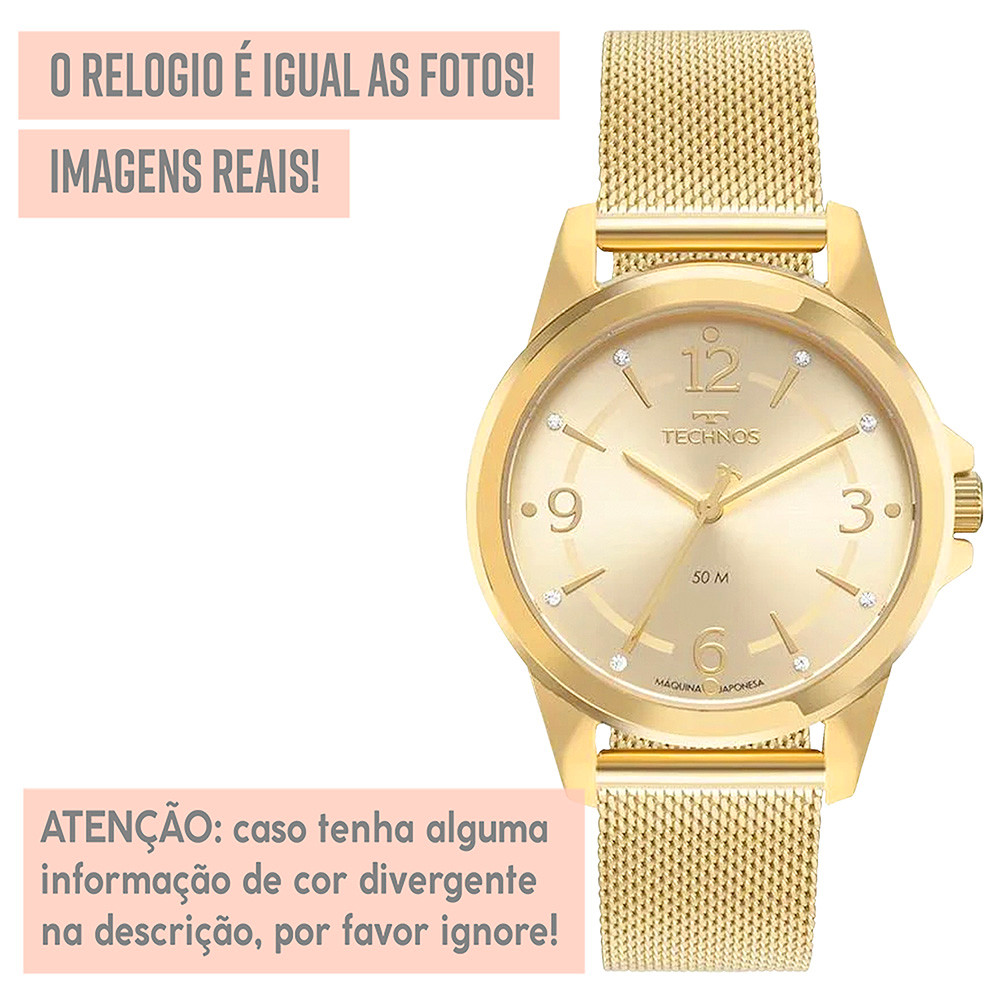 Relógio Feminino Technos Analógico Dourado 1 Ano De Garantia
