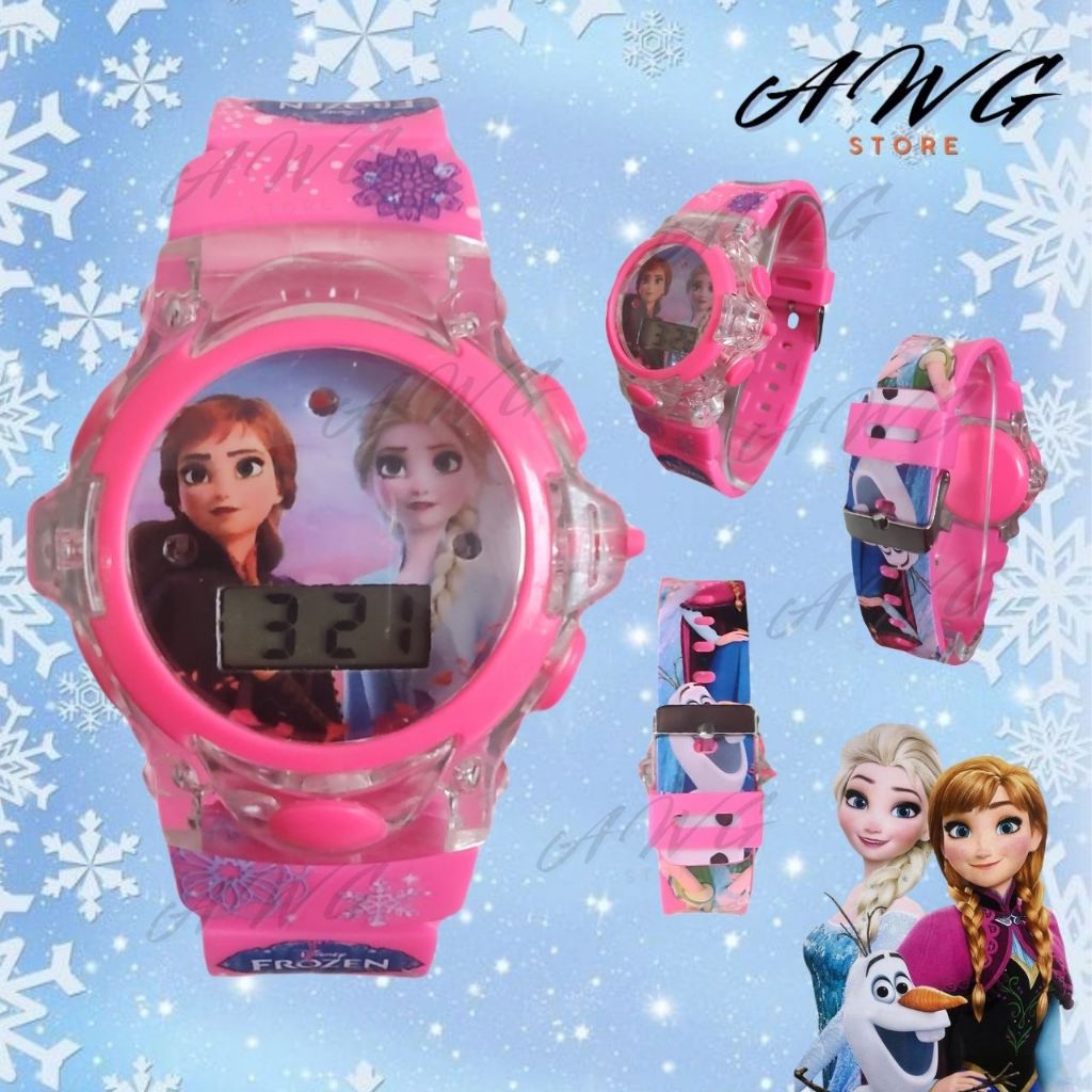 Relógio Frozen De Menina Feminino Digital Rosa Led Luz E Som Colorido Promoção