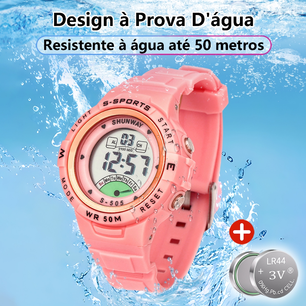 Relógio Infantil A Prova D'Água Original Eletrônico Com Led Cronômetro Estudantes Relogio