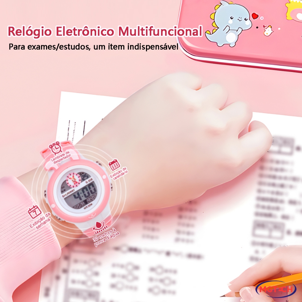 | Relógio Digital Infantil À Prova D'água Com Display Luminoso Multif... | R$ 21,79 | 56% | 4.9/5 | 1.5 mil |