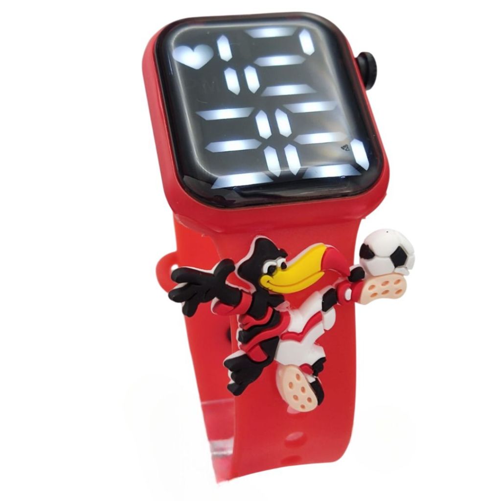 Relógio Infantil Digital time Brasileiro Led Mascote Futebol Vermelho