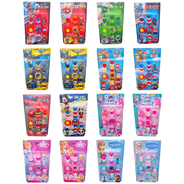 Relógio Infantil Montável com Boneco Heróis Princesas e Desenhos Animados