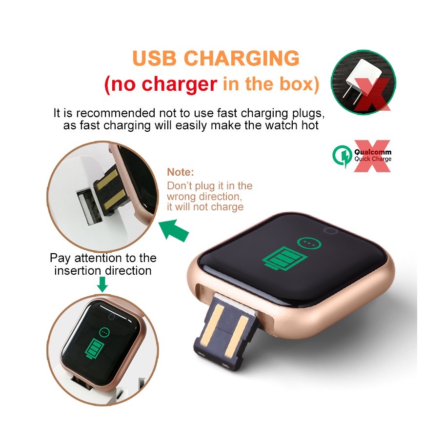 O produto precisa usar fonte de alimentação 5V1A ou energia USB ser carregada por pelo menos uma hora antes de iniciar a máquina Nota: Relógio inteligente de alta precisão, por isso não é à prova d'água. Não tome para nadar e tomar banho Sem carregador na caixa!!! Sem carregador na caixa!!! Recomenda-se não usar plugues de carregamento rápido, pois não pode ser usado!!! Não ligue na direção errada, não carregará!!! Preste atenção na direção de inserção!!! A conexão móvel requer baixar primeiro o aplicativo Hryfine!! Este produto realmente não tem uma função "vibração". Por favor, consulte os detalhes do sistema para precisão!!! Se o relógio não puder se conectar ao Bluetooth: "Você precisará reiniciar tanto o relógio quanto o telefone, e precisará remover a conexão entre o relógio e o telefone no seu telefone antes de tentar se reconectar Eles são os mesmos." O smartwatch é equipado com uma placa de proteção da bateria. Acionará um longo período de transporte, a potência e a proteção contra baixa potência. Após um longo período de transporte, a energia cairá e a proteção contra baixa potência será ativada. Por favor, carregue-o por mais tempo antes de usá-lo pela primeira vez. Descrição do produto: Carga direta de remoção rápida USB USB USB Novo método de carregamento de pulseira, design de pulseira destacável de liberação rápida, pode ser carregado conectando na interface USB, eliminando o problema de transportar um cabo de carregamento e suporte de carregamento. Assistente de vida inteligente inteligente assistente O relógio pode monitorar as etapas, calorias, frequência cardíaca, distância, qualidade do sono, etc. Do dia. Ao mesmo tempo, pode conectar a um telefone inteligente para visualizar as informações, tirar fotos remotamente, recuperar telefones celulares e outras funções pensativas e convenientes para tornar sua vida mais conveniente. Prático prático Mantenha-se a par de sua intensidade do exercício e condição física a fim de ajustar seu plano de fitness em tempo hábil. Material amigável à pele A pulseira é feita de TPU macio leve e amigo da pele, que adota design leve, sem sensação de usar. Principais características: Relógio Inteligente Y68 APP: Hryfine Versão Bluetooth da versão Bluetooth: Bluetooth 4.0 Impermeável / Resistente à água: Sim Modo de operação do toque: Botão de toque Ligue a tecla de função: pressione e segure a tecla de função Tipo de tela TFT de 1,3 polegadas: LCD TFT de 1,3 polegadas OS compatível com Android, IOS Funções: Esporte, Mensagem, Despertador, Oxigênio no sangue,Data, Medição da frequência cardíaca, Lembrete sedentário, Gerenciamento do sono,Tempo Tipo de notificação: Facebook,Twitter,Wechat,WhatsApp Tipo de alerta: Vibração Conteúdo da Embalagem: 1 x relógio inteligente 1 x Manual 1 x Caixa