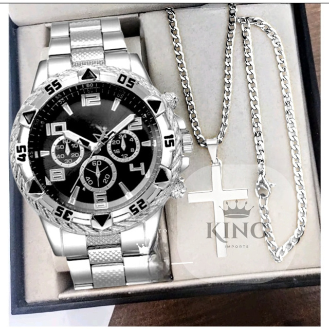 | Relógio Masculino Dourado Aço inox kit Com Corrente Pingente e Puls... | R$ 36,99 | 69% | 4.6/5 | 134 |