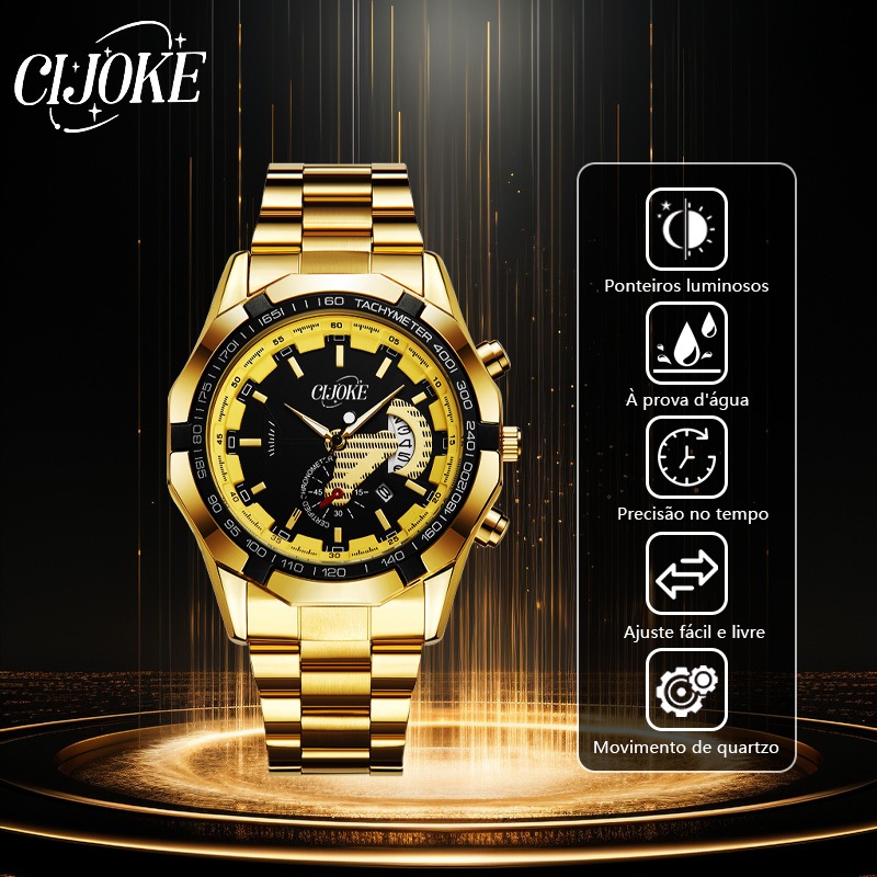 Relógio masculino aço inoxidável, à prova d'água, mostrador luminoso, luxo e versatilidade