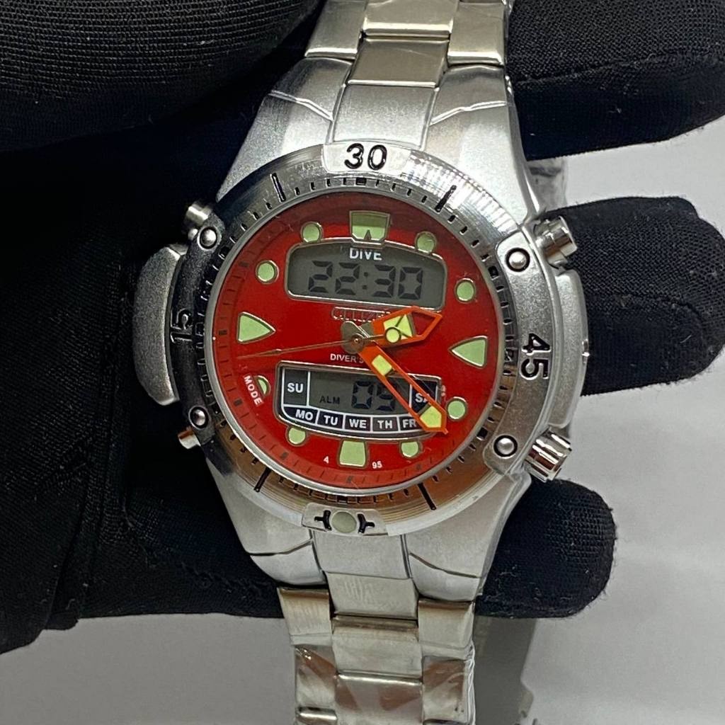 Nunca perca o tempo e esteja pronto para suas aventuras aquáticas com o Relógio Aqualand. Este relógio de mergulho é a escolha perfeita para entusiastas do mar que desejam estar sempre em sintonia com os números e ter um parceiro confiável durante suas explorações subaquáticas. Com uma resistência à água de até 20 metros, este modelo analógico-digital oferece diversas funções essenciais para mergulhadores, incluindo medição de profundidade e controle de oxigênio. Além disso, ele adiciona um toque de modernidade ao seu visual e pode ser usado em diversas ocasiões. FUNÇÕES - Exibição analógica e digital - Cronógrafo progressivo - Calendário digital completo - Opção de horário 12/24 horas - Alarme diário - Alarme de profundidade de mergulho - Alarme de tempo de mergulho (controle de oxigênio) - Profundômetro CARACTERÍSTICAS - Sistema de energia: Bateria - Ponteiros e índices luminosos - Coroa rosqueada - Tampa posterior rosqueada - Resistência à água: 20 metros - Vidro resistente a arranhões - Pulseira de aço inoxidável com escala de profundidade e descompressão - Indicado para: Atividades diárias, mergulho, esportes aquáticos e estilo casual. Tipo de Relógio: Analógico e Digital Como é feito o envio do produto? Para garantir que seu relógio Aqualand chegue em perfeitas condições, ele será enviado em uma embalagem de proteção adequada. Prazo de envio: Comprometemo-nos a enviar seu pedido em até 1 dia útil após a confirmação do pagamento. É possível retirada na loja? Somos uma loja exclusivamente online e atendemos clientes em todo o Brasil. ATENÇÃO: Todas as imagens e informações deste produto são autênticas e de nossa própria autoria. Não utilizamos imagens genéricas ou de terceiros. Convidamos você a conhecer a qualidade do Relógio Aqualand e fazer sua compra com total segurança. Nossa marca e equipe estão empenhadas em proporcionar a melhor experiência na pré-venda e pós-venda, garantindo uma compra segura.
