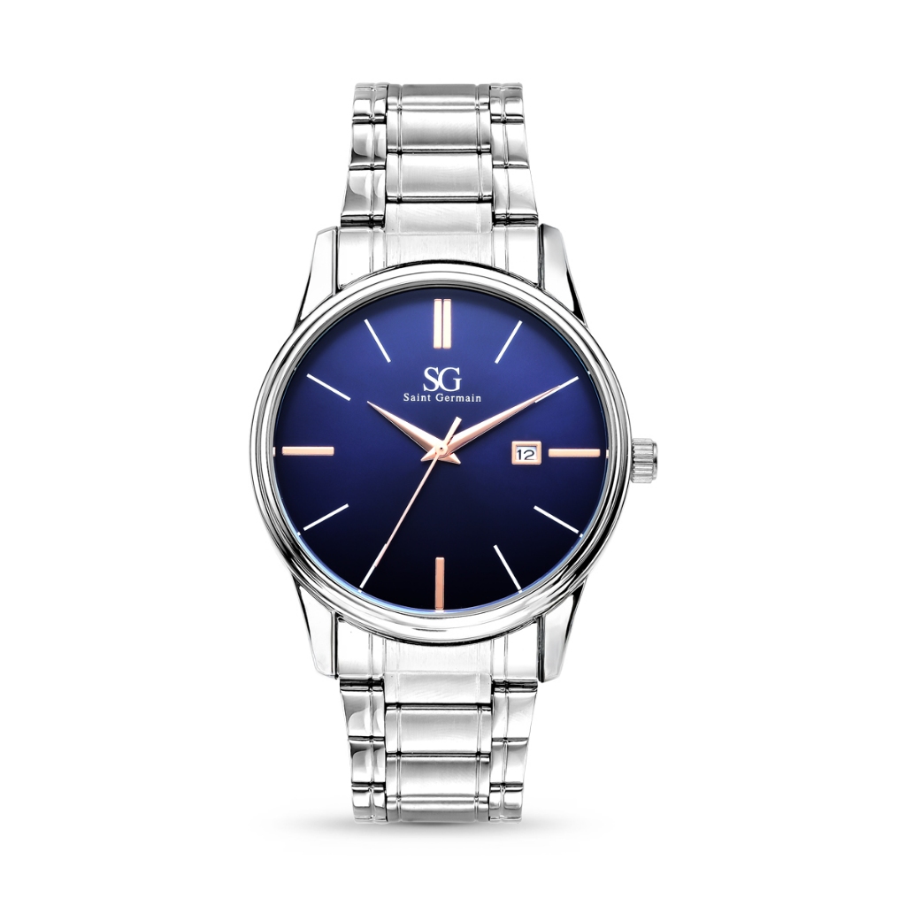 Relógio Masculino Chroma Clássico Prata Mostrador Azul Marinho Saint Germain Elegância Casual