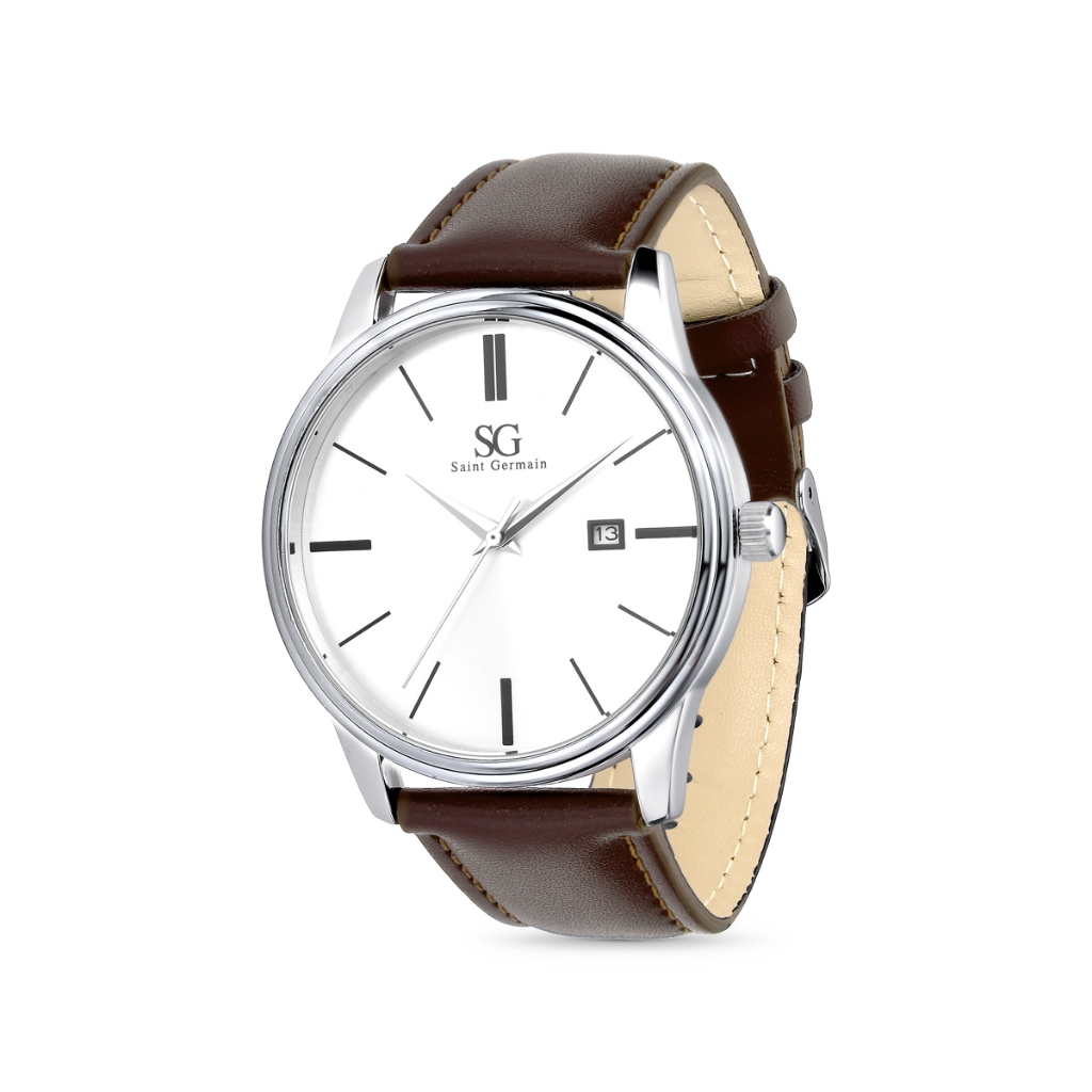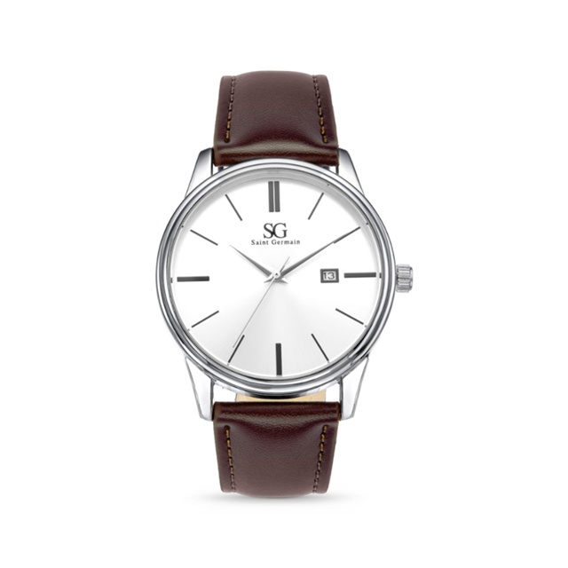 Relógio Masculino Saint Germain Couro Marrom Caixa Prata Design Minimalista O acessório perfeito para completar o visual masculino com elegância e versatilidade. O Relógio Saint Germain traz um design minimalista com mostrador prateado escovado e pulseira em couro marrom de alta qualidade, ideal para quem busca estilo clássico em todas as ocasiões. Caixa prateada em aço inoxidável resistente Pulseira em couro marrom ajustável e confortável Movimento de quartzo preciso com calendário Vidro mineral durável contra riscos Design atemporal que combina com qualquer look Detalhes do Produto Caixa: 42 mm (aço inoxidável) Espessura: 6 mm Pulseira: 22 mm de largura | 24 cm de comprimento (couro marrom) Mostrador: Prata escovado | Analógico Resistência: 3 ATM (respingo) Bateria: 377 (SR626SW) Peso: 95 g Na embalagem você recebe: 1 Relógio Masculino Saint Germain Estojo exclusivo da marca Certificado de garantia Um relógio sofisticado e versátil, perfeito para uso diário ou como presente especial.