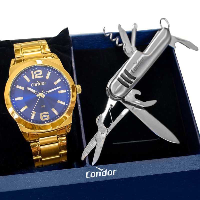 Relógio Masculino Condor Dourado Azul COPC21AECEK4A - Garantia de Um Ano