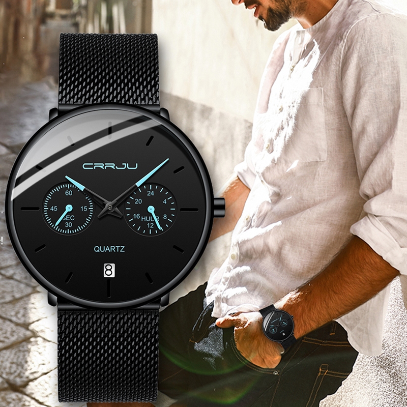 Relógio Masculino CRRJU Marca Original Moda Esportes Ao Ar Livre Estilo Calendário Pulseira De Aço Inoxidável Negócios C