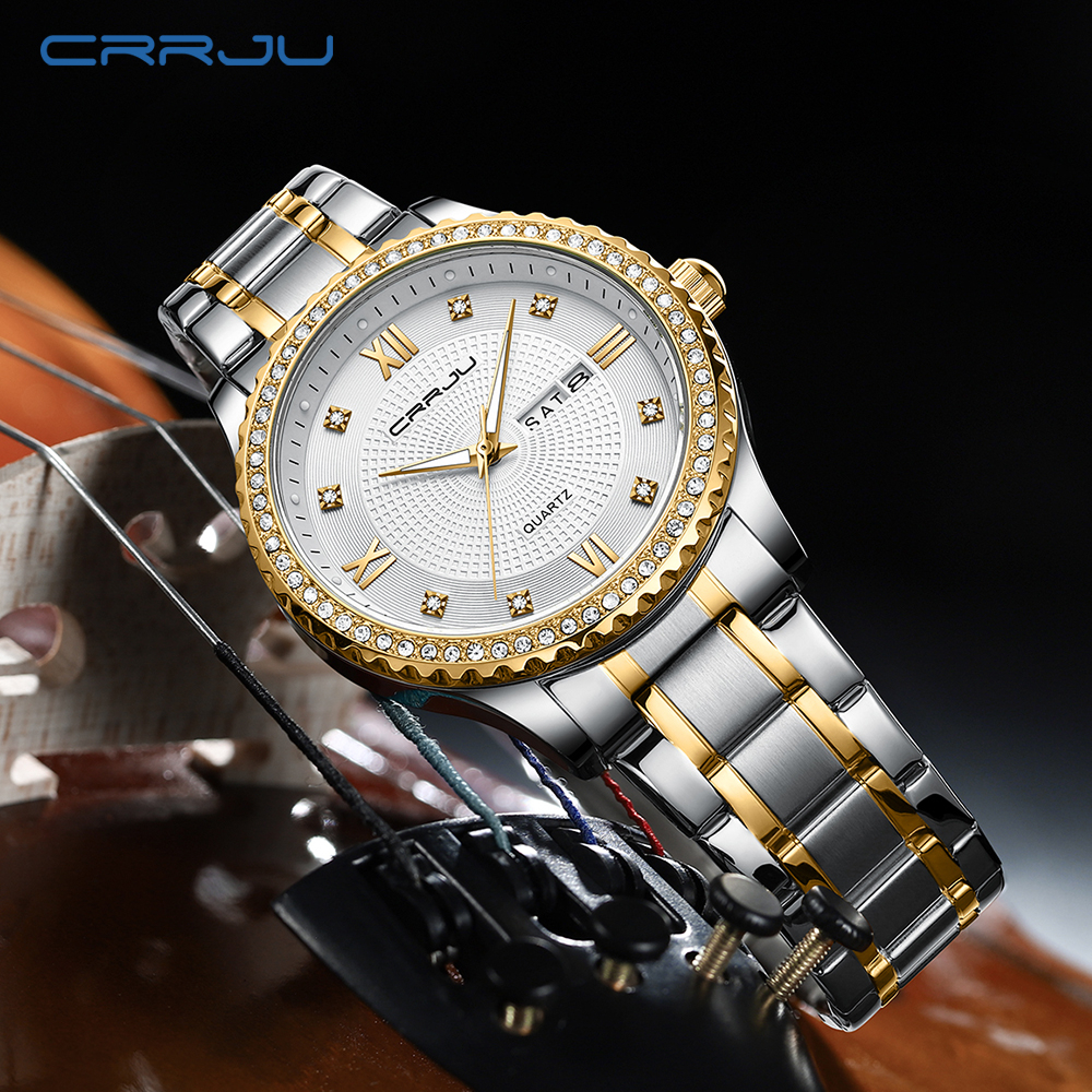 Relógio Masculino CRRJU Marca Top Original De Luxo Em Aço Inoxidável Moda Casual Esportiva Quartzo À Prova D'água 5016