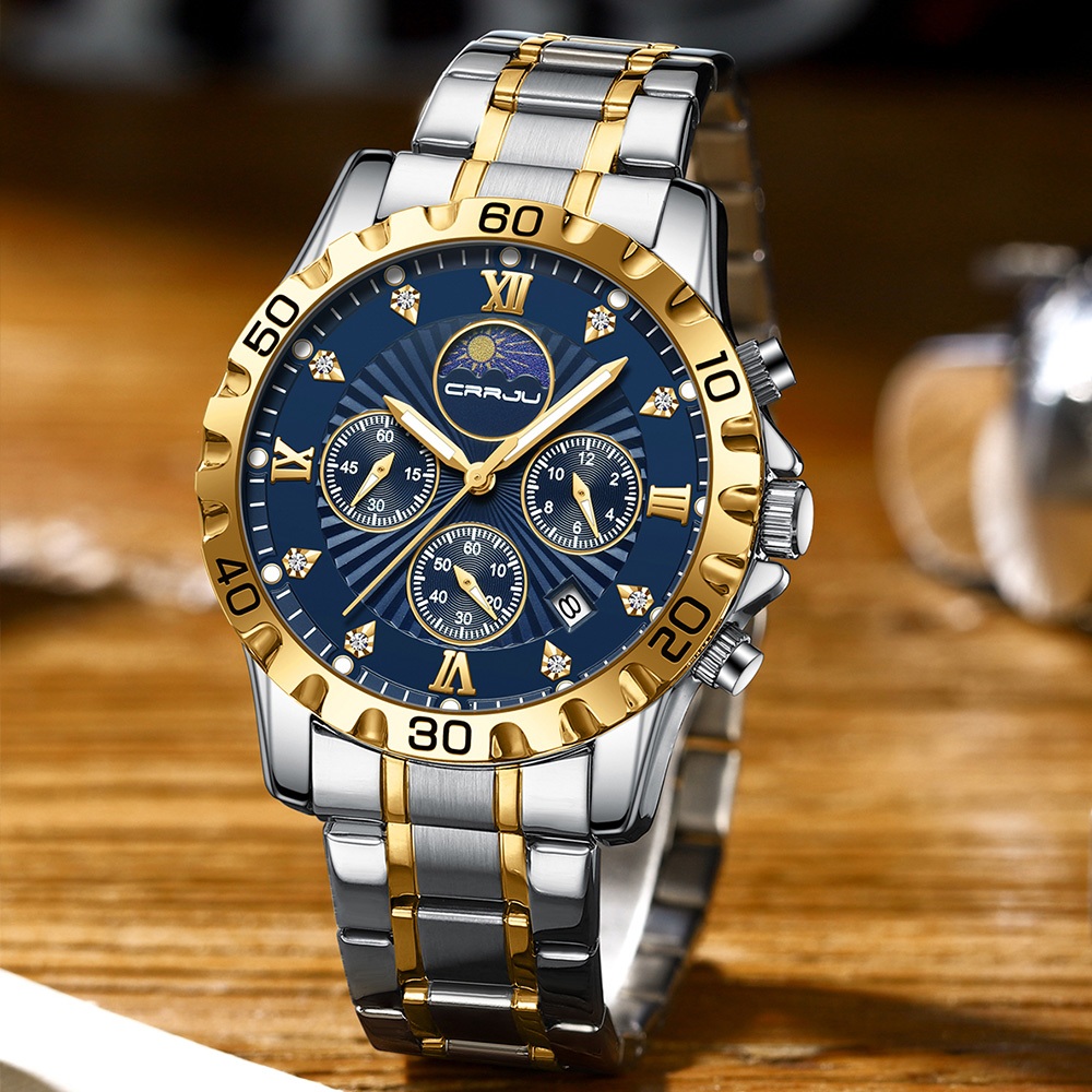 Relógio Masculino CRRJU Nova Marca Original Chrono Multifuncional De Aço Inoxidável Ponteiro Luminoso De Moda Casual De Quartzo À Prova D'água 2320 X